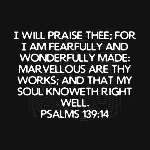 Fearfully & Wonderfully Made Posted on February 25, 2020 by Guylaine S Gamble www.bible.com/1/psa.139.14.kjv Share this: Click to share on Facebook (Opens in new window) Facebook Click to share on X (Opens in new window) X Click to share on Pinterest (Opens in new window) Pinterest Click to share on LinkedIn (Opens in new window) LinkedIn More Click to email a link to a friend (Opens in new window) Email Click to share on Tumblr (Opens in new window) Tumblr Click to share on Reddit (Opens in new window) Reddit Click to share on Pocket (Opens in new window) Pocket Click to print (Opens in new window) Print Like Loading... Related