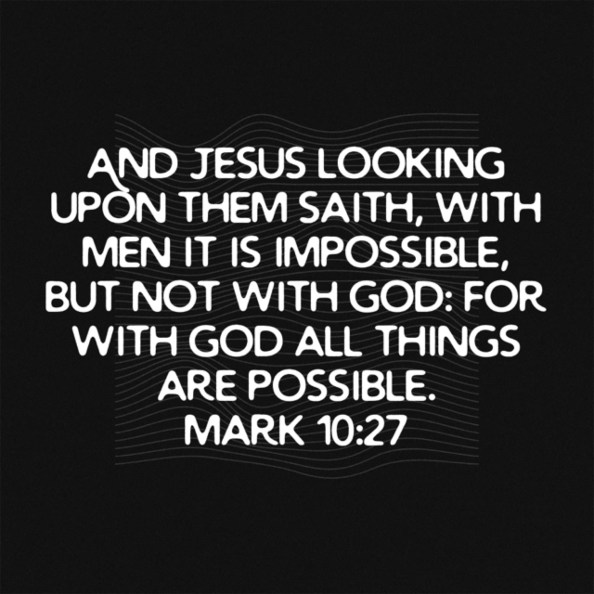 With God all Things are Possible Posted on February 27, 2020 by Guylaine S Gamble www.bible.com/1/mrk.10.27.kjv Share this: Click to share on Facebook (Opens in new window) Facebook Click to share on X (Opens in new window) X Click to share on Pinterest (Opens in new window) Pinterest Click to share on LinkedIn (Opens in new window) LinkedIn More Click to email a link to a friend (Opens in new window) Email Click to share on Tumblr (Opens in new window) Tumblr Click to share on Reddit (Opens in new window) Reddit Click to share on Pocket (Opens in new window) Pocket Click to print (Opens in new window) Print Like Loading... Related