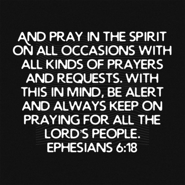 Pray in the Spirit Posted on March 25, 2020 by Guylaine S Gamble www.bible.com/111/eph.6.18.niv Share this: Share on Facebook (Opens in new window) Facebook Share on X (Opens in new window) X Share on Pinterest (Opens in new window) Pinterest Share on LinkedIn (Opens in new window) LinkedIn More Email a link to a friend (Opens in new window) Email Share on Tumblr (Opens in new window) Tumblr Share on Reddit (Opens in new window) Reddit Share on Pocket (Opens in new window) Pocket Print (Opens in new window) Print Like Loading... Related