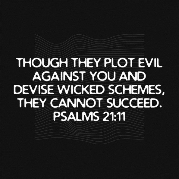 Evil Plots Posted on June 20, 2020 by Guylaine S Gamble www.bible.com/111/psa.21.11.niv Share this: Click to share on Facebook (Opens in new window) Facebook Click to share on X (Opens in new window) X Click to share on Pinterest (Opens in new window) Pinterest Click to share on LinkedIn (Opens in new window) LinkedIn More Click to email a link to a friend (Opens in new window) Email Click to share on Tumblr (Opens in new window) Tumblr Click to share on Reddit (Opens in new window) Reddit Click to share on Pocket (Opens in new window) Pocket Click to print (Opens in new window) Print Like Loading... Related