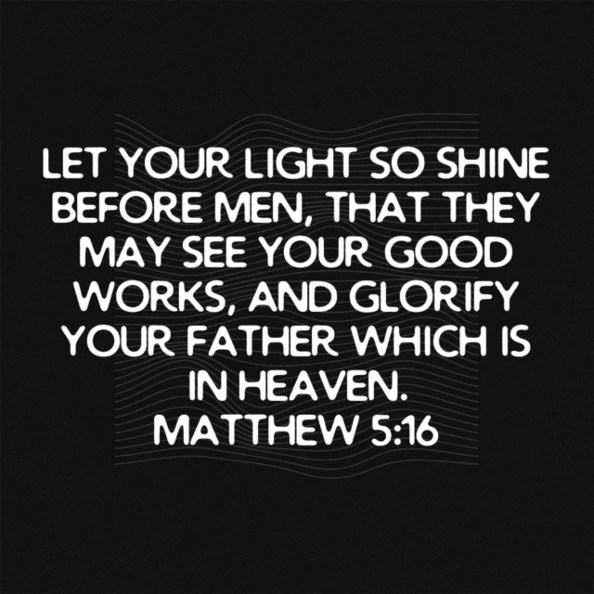 Let your light shine Posted on July 18, 2020 by Guylaine S Gamble www.bible.com/1/mat.5.16.kjv Share this: Click to share on Facebook (Opens in new window) Facebook Click to share on X (Opens in new window) X Click to share on Pinterest (Opens in new window) Pinterest Click to share on LinkedIn (Opens in new window) LinkedIn More Click to email a link to a friend (Opens in new window) Email Click to share on Tumblr (Opens in new window) Tumblr Click to share on Reddit (Opens in new window) Reddit Click to share on Pocket (Opens in new window) Pocket Click to print (Opens in new window) Print Like Loading... Related