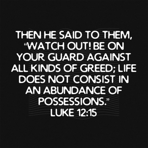 Greed Posted on July 27, 2020 by Guylaine S Gamble www.bible.com/111/luk.12.15.niv Share this: Click to share on Facebook (Opens in new window) Facebook Click to share on X (Opens in new window) X Click to share on Pinterest (Opens in new window) Pinterest Click to share on LinkedIn (Opens in new window) LinkedIn More Click to email a link to a friend (Opens in new window) Email Click to share on Tumblr (Opens in new window) Tumblr Click to share on Reddit (Opens in new window) Reddit Click to share on Pocket (Opens in new window) Pocket Click to print (Opens in new window) Print Like Loading... Related