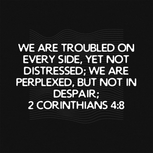 Troubled & Perplexed Posted on September 6, 2020 by Guylaine S Gamble www.bible.com/1/2co.4.8.kjv Share this: Click to share on Facebook (Opens in new window) Facebook Click to share on X (Opens in new window) X Click to share on Pinterest (Opens in new window) Pinterest Click to share on LinkedIn (Opens in new window) LinkedIn More Click to email a link to a friend (Opens in new window) Email Click to share on Tumblr (Opens in new window) Tumblr Click to share on Reddit (Opens in new window) Reddit Click to share on Pocket (Opens in new window) Pocket Click to print (Opens in new window) Print Like Loading... Related