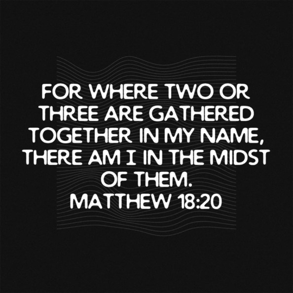 Two or Three Gathered in My Name Posted on January 8, 2022 by Guylaine S Gamble bible.com/bible/1/mat.18.20.KJV Share this: Click to share on Facebook (Opens in new window) Facebook Click to share on X (Opens in new window) X Click to share on Pinterest (Opens in new window) Pinterest Click to share on LinkedIn (Opens in new window) LinkedIn More Click to email a link to a friend (Opens in new window) Email Click to share on Tumblr (Opens in new window) Tumblr Click to share on Reddit (Opens in new window) Reddit Click to share on Pocket (Opens in new window) Pocket Click to print (Opens in new window) Print Like Loading... Related