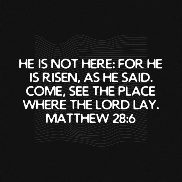 He is Risen Posted on April 4, 2021 by Guylaine S Gamble www.bible.com/1/mat.28.6.kjv Share this: Share on Facebook (Opens in new window) Facebook Share on X (Opens in new window) X Share on Pinterest (Opens in new window) Pinterest Share on LinkedIn (Opens in new window) LinkedIn More Email a link to a friend (Opens in new window) Email Share on Tumblr (Opens in new window) Tumblr Share on Reddit (Opens in new window) Reddit Print (Opens in new window) Print Like Loading...